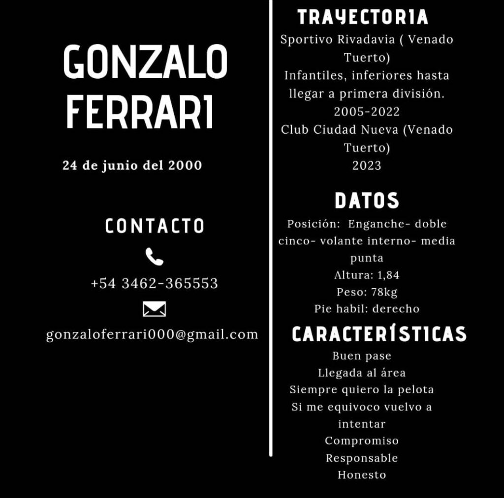 Gonzalo Ferrari Buen pase – Llegada al área – Siempre quiero la pelota Si me equivoco vuelvo a intentar – Compromiso – responsable – Honesto Video